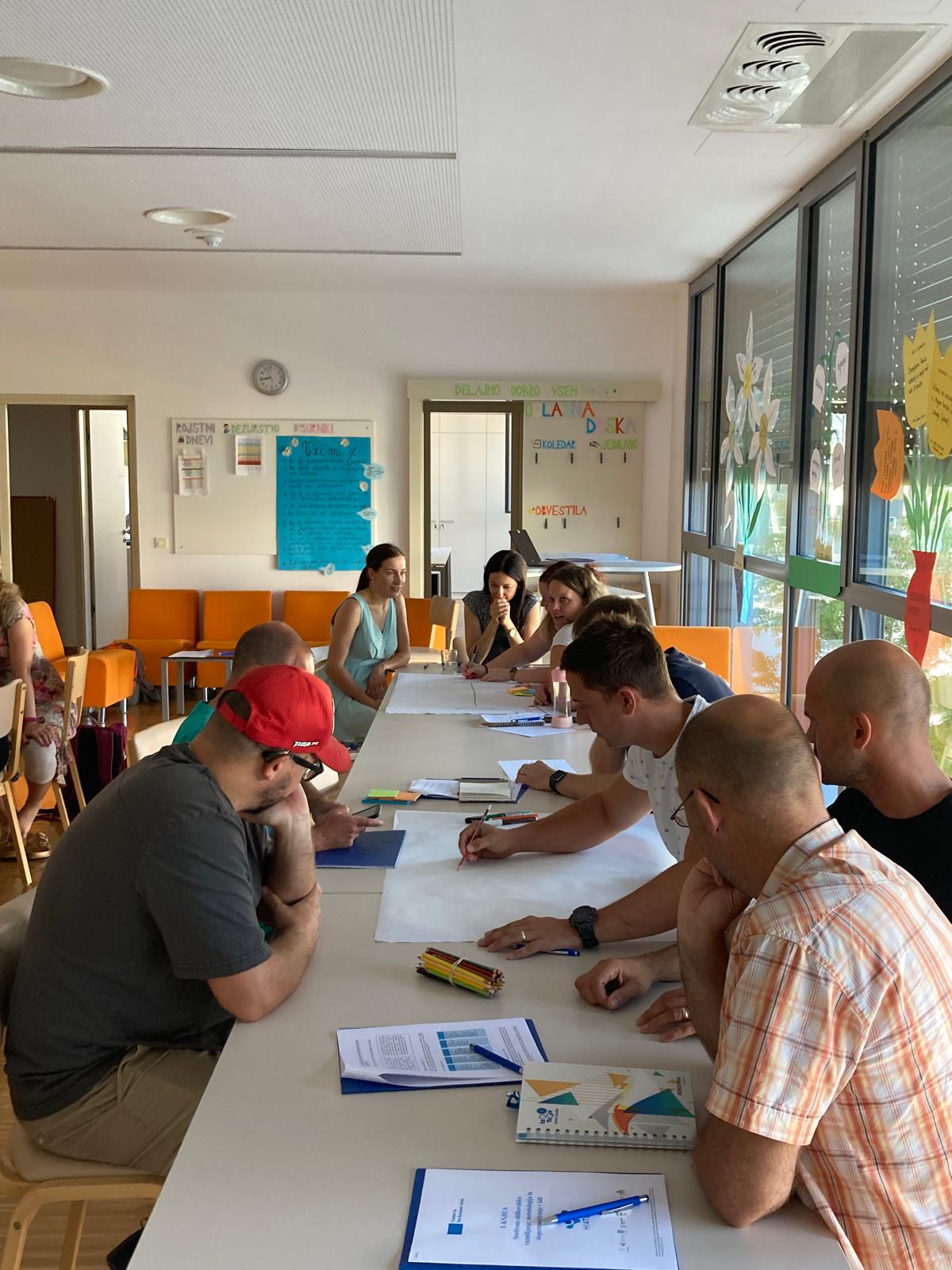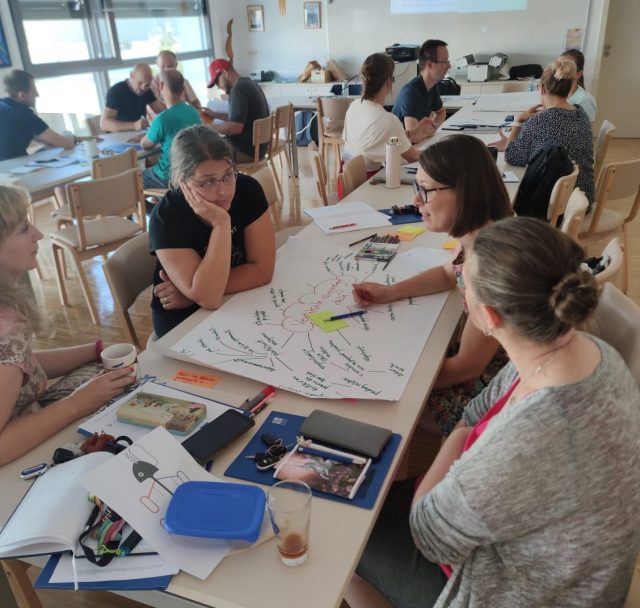 The aim of today’s event was to present the project results to educators and simultaneously deepen their understanding of SDT. We started with an introduction to the project’s outcomes, emphasizing their relevance and application in education. We then walked participants through all phases of SDT, giving them the opportunity to apply these concepts in a practical challenge. Working in groups, attendees collaborated to develop innovative solutions, reflecting the human-centered approach central to SDT.