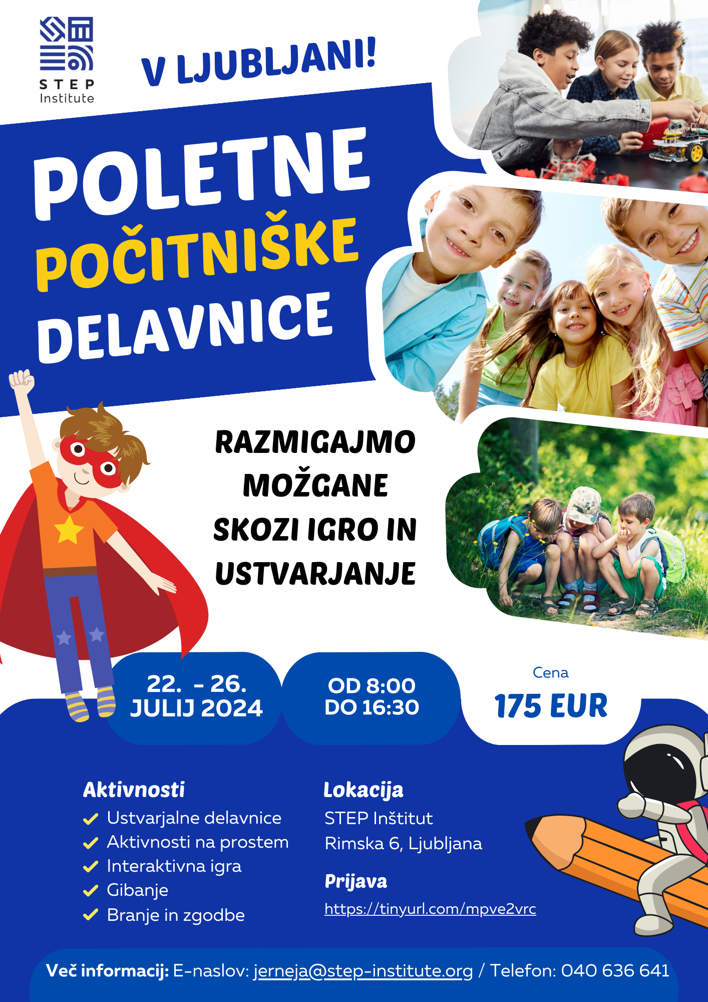 Delavnice bodo potekale vsak dan, od 22. do 26. julija 2024 na sedežu STEP Inštituta, na Rimski 6 v Ljubljani.